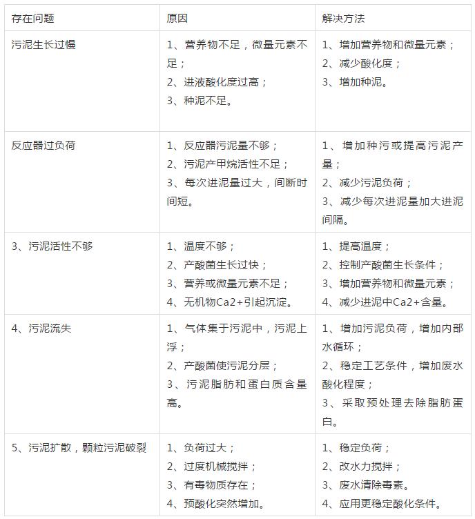 4、負荷增加操作方式:啟動初期容積負荷可從0.2-0.5kgCOD/m3·d開始,當生物降解能力達到80%以上時,再逐步加大。若最低負荷進料,厭氧過程仍不正常COD不能消化,則進料間斷時間應延長24h或2-3d,檢查消化降解的主要指標測量VFA濃度,啟動階段VFA應保持在3mmoL/L以下。