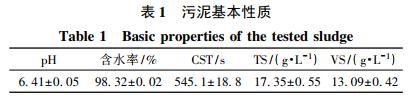 實驗所用污泥取自上海市閔行水處理運營有限公司產(chǎn)生的濃縮污泥,取回后立即放入 4 ℃冰箱中儲存。實驗污泥的基本性質(zhì)如表 1 所示。