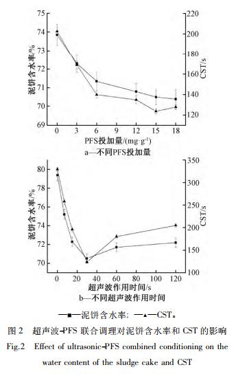 2. 2 超聲波-PFS 聯(lián)合調(diào)理對污泥脫水性能的影響
