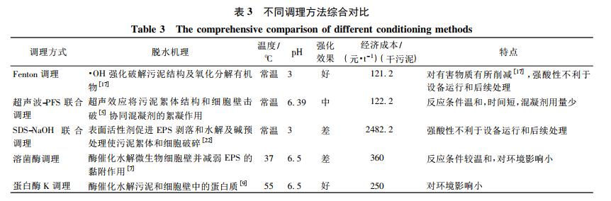 2. 5 不同調(diào)理方法強化污水廠污泥脫水性能的綜合比較